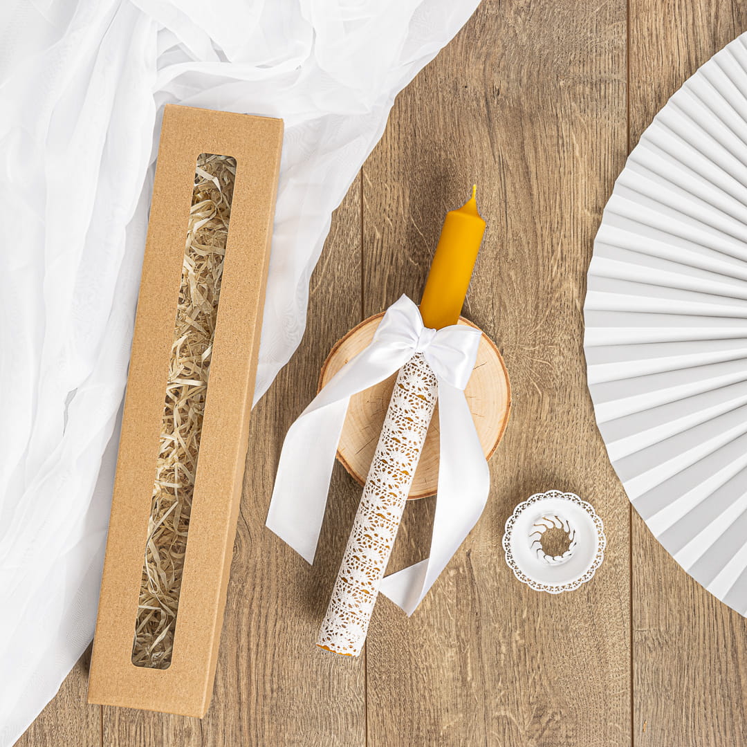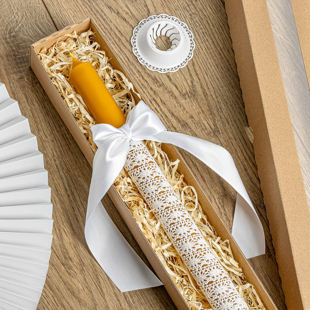 Świeca gromnica biała do chrztu świętego z 100% wosku pszczelego, okapnik, ozdobne pudełko do wyboru