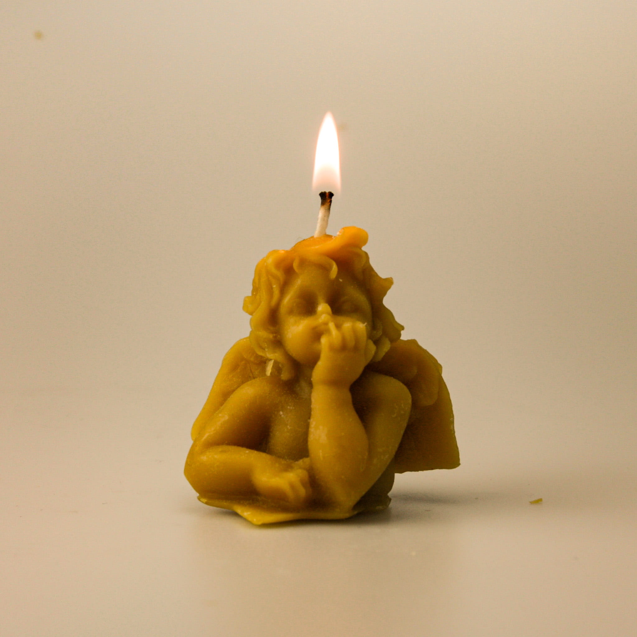 Nasza świeca wykonana jest ze 100% wosku pszczelego. Posiada kształt pięknego aniołka, przedstawionego w portrecie z zamyśloną miną. Taka świeca idealnie podkreśli klimat Świąt Bożego Narodzenia, czy też Świąt Wielkanocnych. Będzie również miłym drobnym upominkiem dla bliskiej osoby.