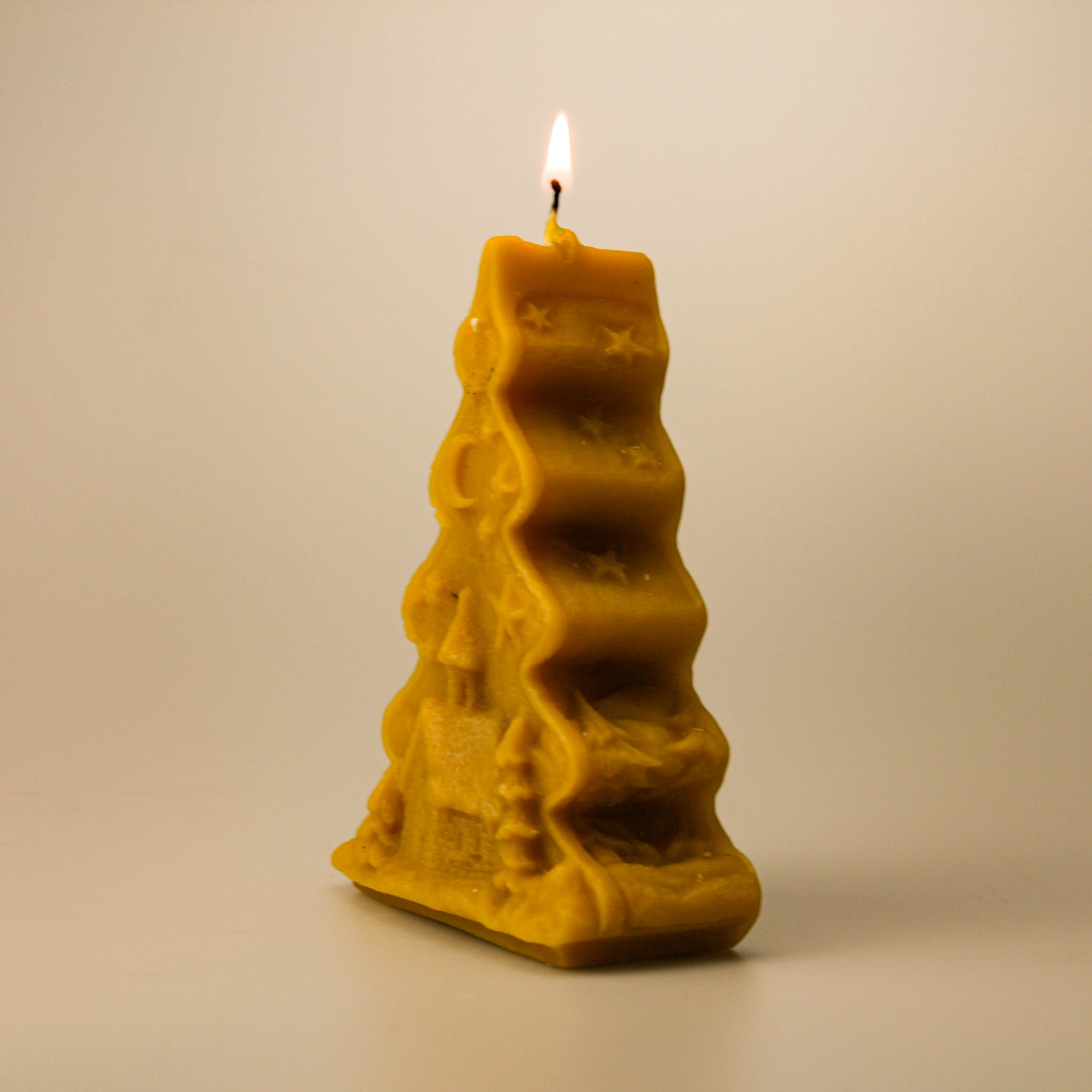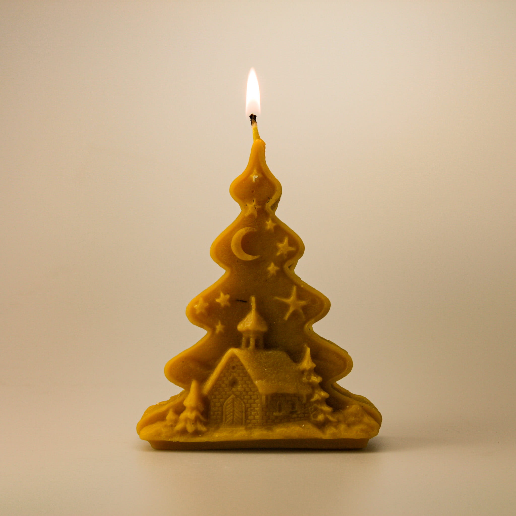 Świeca z wosku pszczelego choinka z kościołem